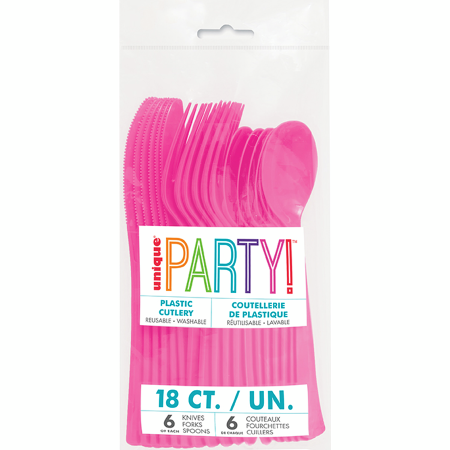 18ct Assorted Cutlery , Hot Pink