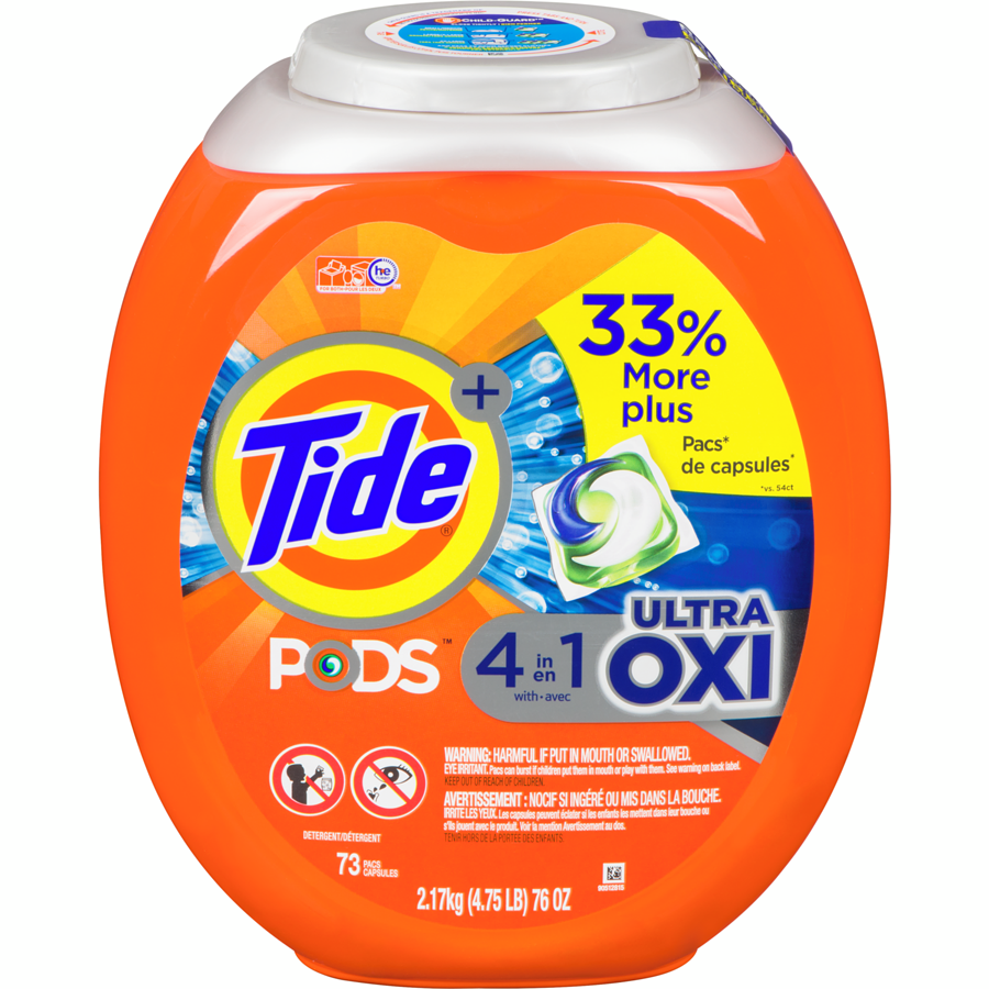 Pods Ultra Oxi Liquid Laundry Detergent Pacs, 73 count