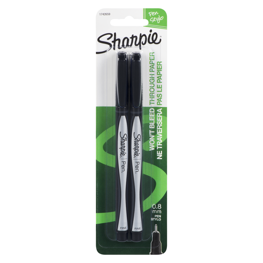 Sharpie Pens, 0.8 mm Fine Tip, Black, 2Pack