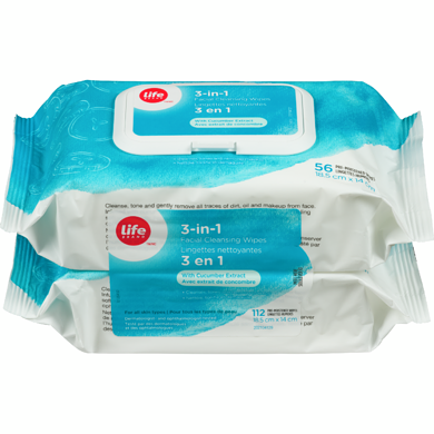 3-In-1 Facial, Cleansing Wipes, With Cucumber Extract, 112 Wipes