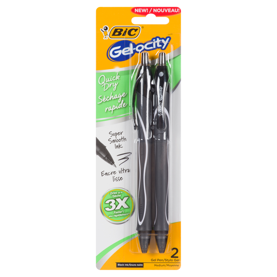 BIC Gel-ocity Quick Dry Gel Pen, Medium Point (0.7mm), Black, 2 Count