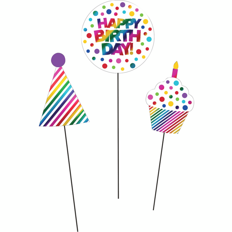 Centerpiece Sticks, Foil Rainbow Happy Birthday
