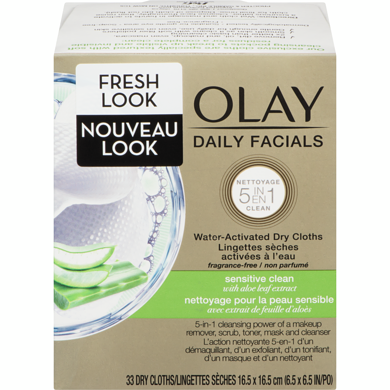 Daily Facials, Sensitive Cleansing Cloths With Aloe Extract, 33 Count