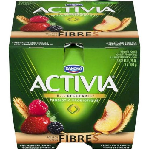 Danone, Activia Yogurt with Probiotics & Fibre, Raspberry Cereal/Peach Cereal, 100G (Pack of 8)8x100g