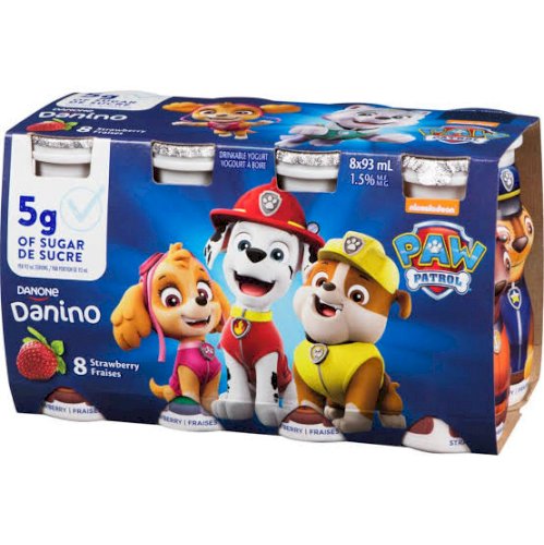 Danone, Danino Paw Patrol Yogurt Drink for Kids, Stawberry Flavour, 93ml (Pack of 8), 8x93mL