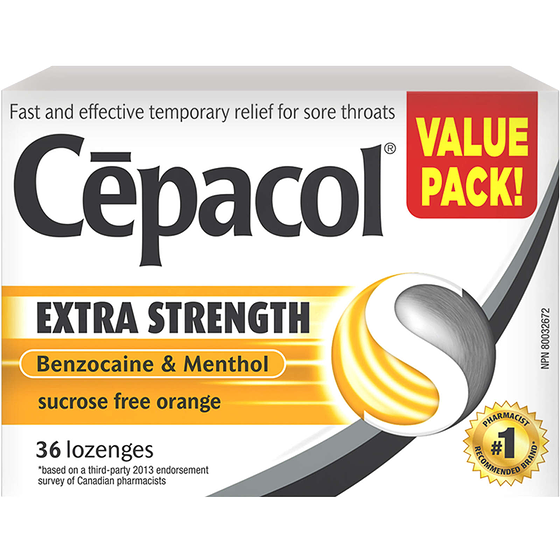 Extra Strength Sucrose Free Orange Value Pack, Sore Throat Lozenges 36ea