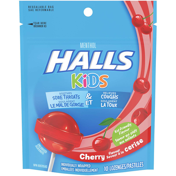 Menthol Kids Cherry Flavour Cough & Sore Throat Pops 10 Lozenges 10ea