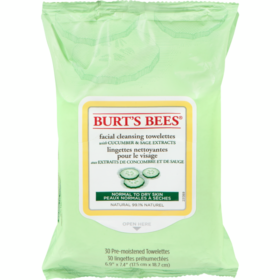 Refreshing Facial Cleanser Towelettes and Makeup Remover Wipes for All Skin Types with Cucumber & Mint 30ea
