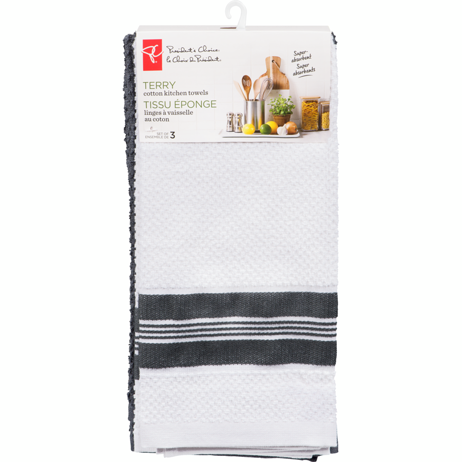 Terry Kitchen Towels, Grey 3*1.0ea