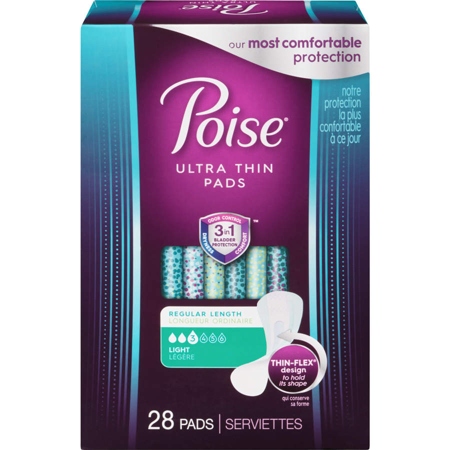 Ultra Thin Incontinence Pads, Light Absorbency, Regular Length, 28EA