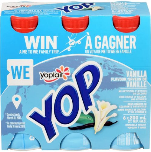 Yoplait, Yop Yogurt Drink, Vanilla, 6x200mL